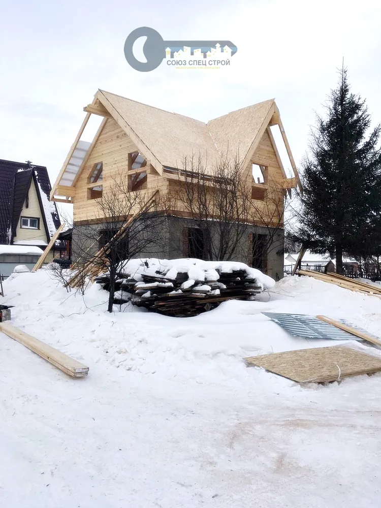 Процесс строительства дачного дома из бруса с ломаной крышей