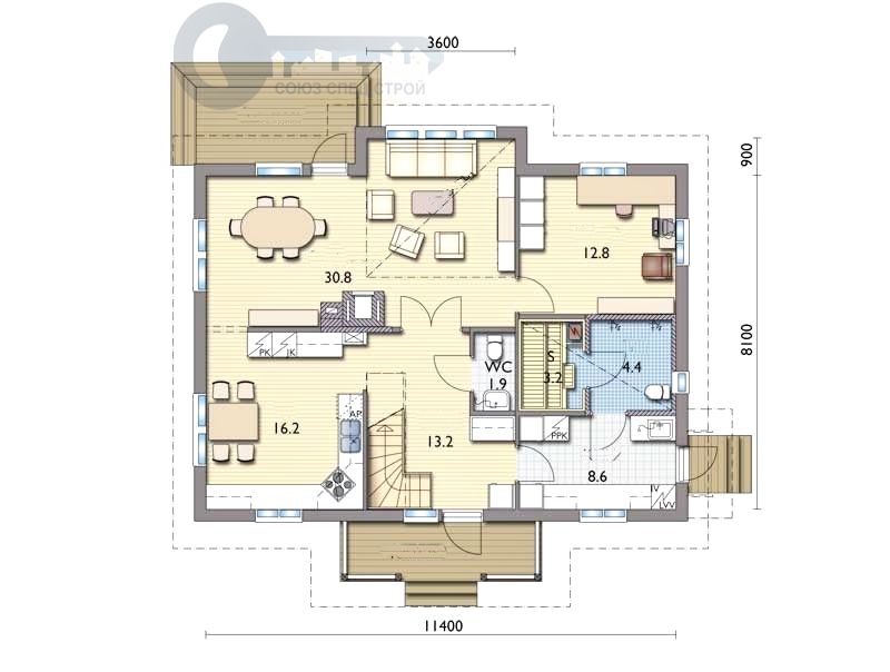 ДЖ-26 ЖИЛОЙ ДОМ: ГАБАРИТНЫЕ РАЗМЕРЫ: (11,4 Х 9М) 2 ЭТАЖА, ОБЩАЯ ПЛОЩАДЬ: М²