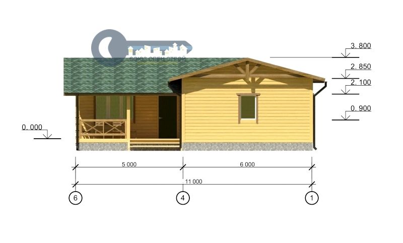 Фронтоны: каркасные, с внешней стороны обшиваются имитацией бруса