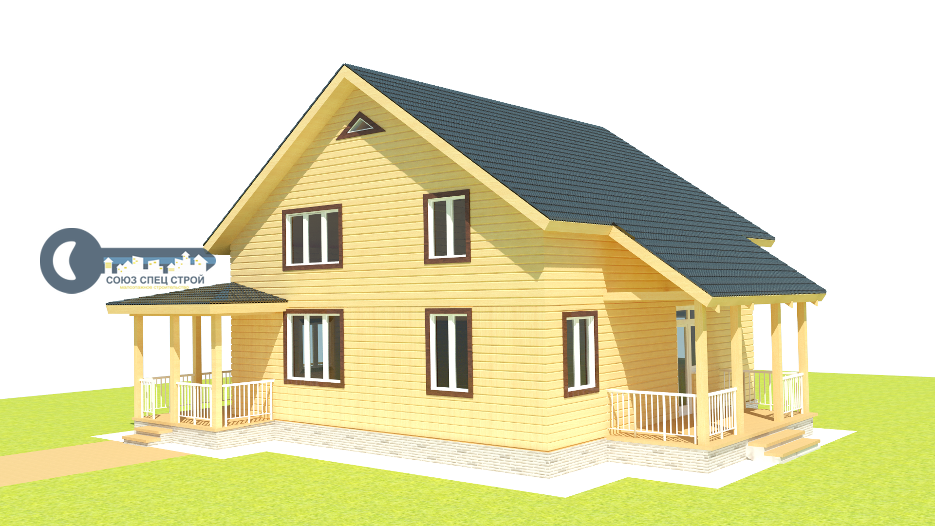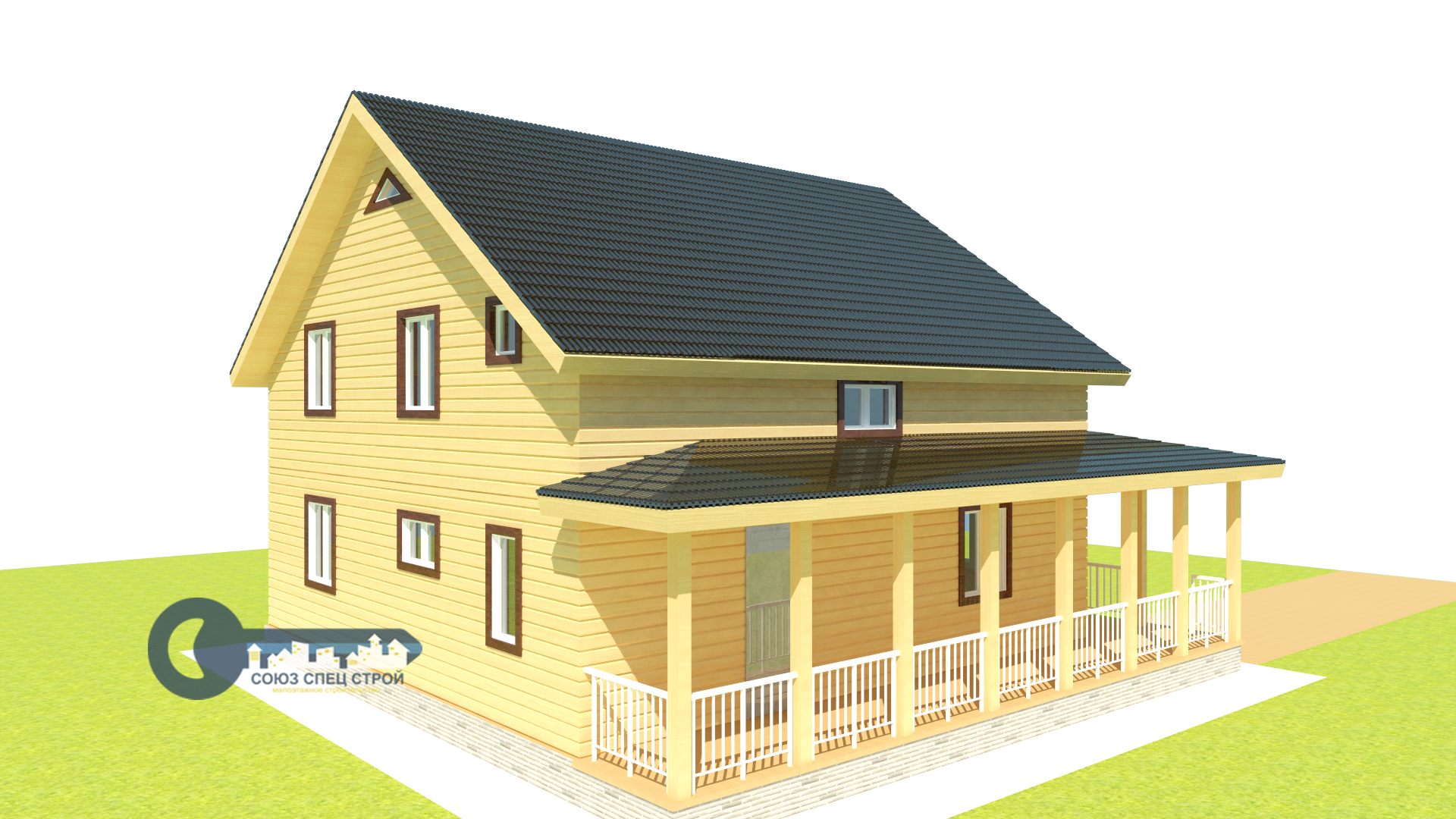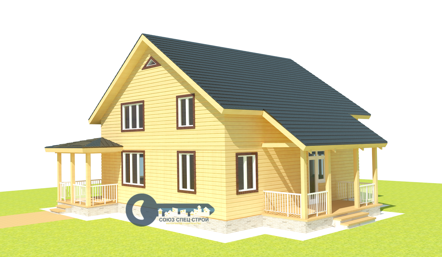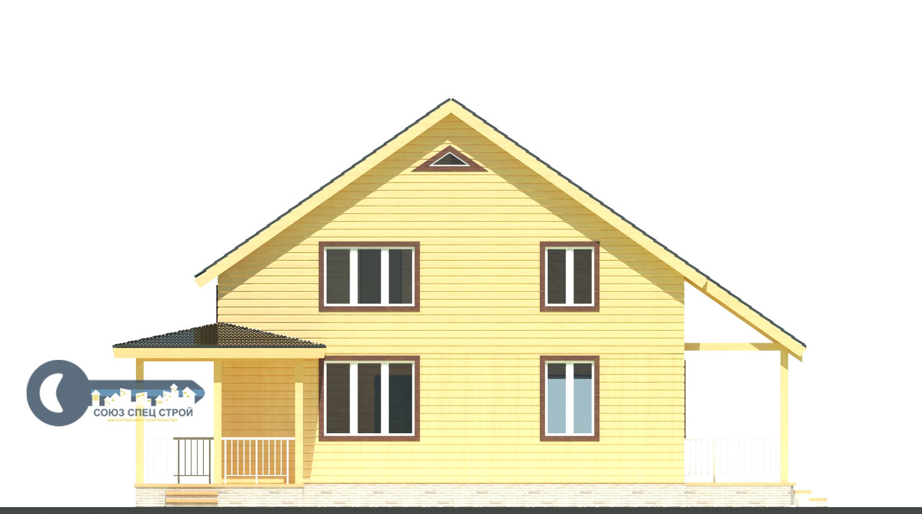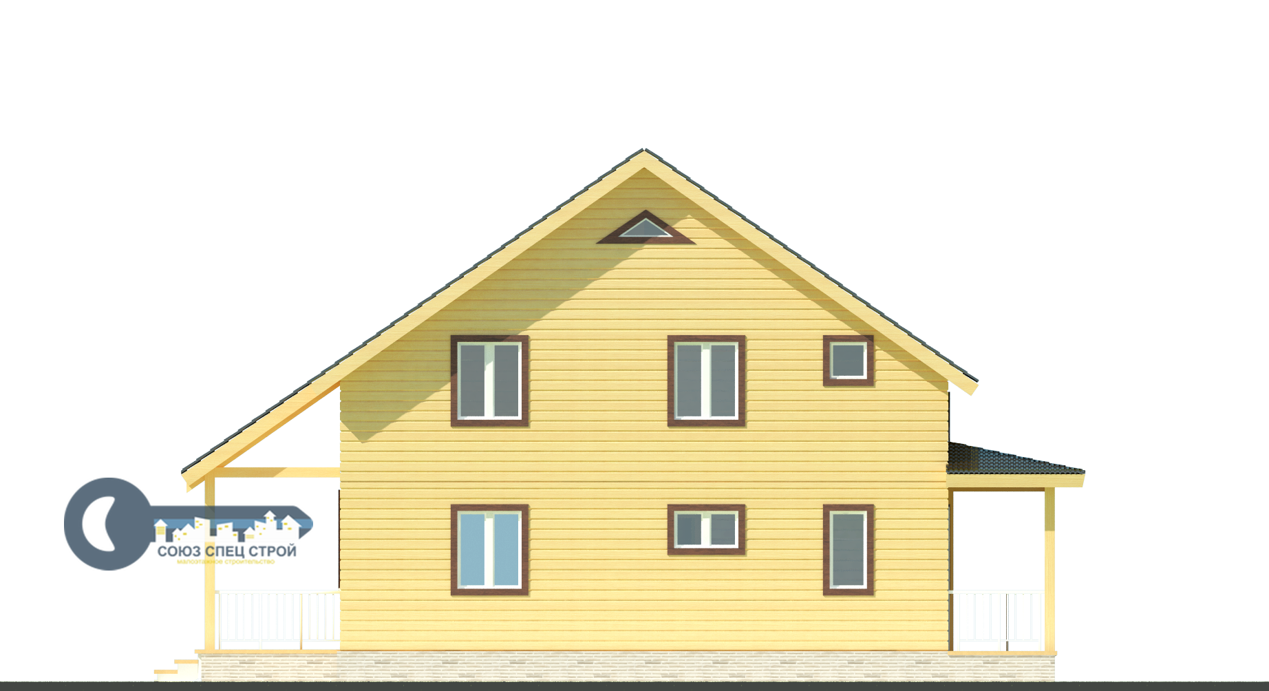 Веранда: высота - 2.25 м, общая крыша с домом, внешний вид согласно визуальной картинке.