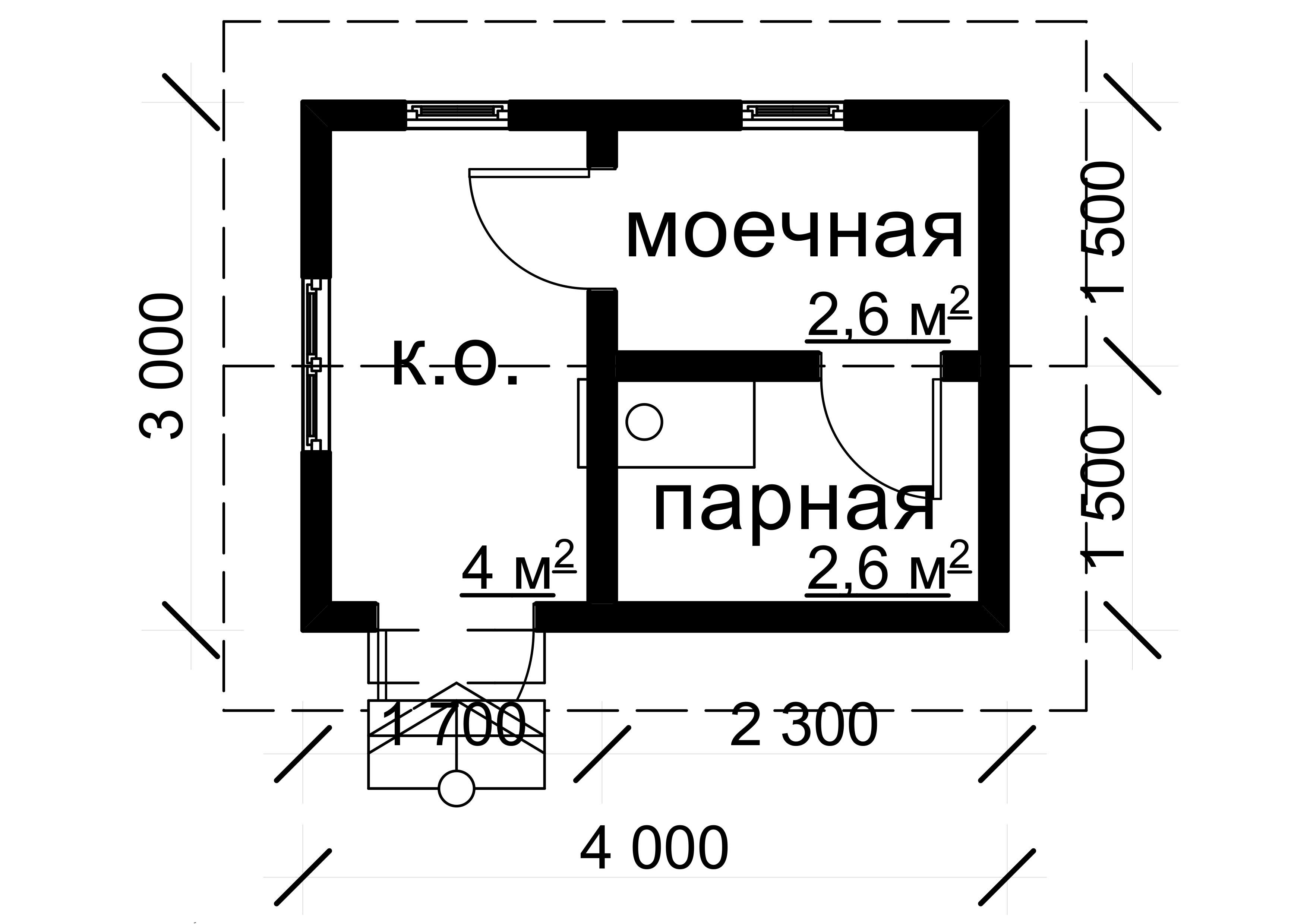 Двери: дверь входная железная с фурнитурой (производство: Россия) - 1шт, банная без фурнитуры – 2 шт, без отделки внутренних откосов.