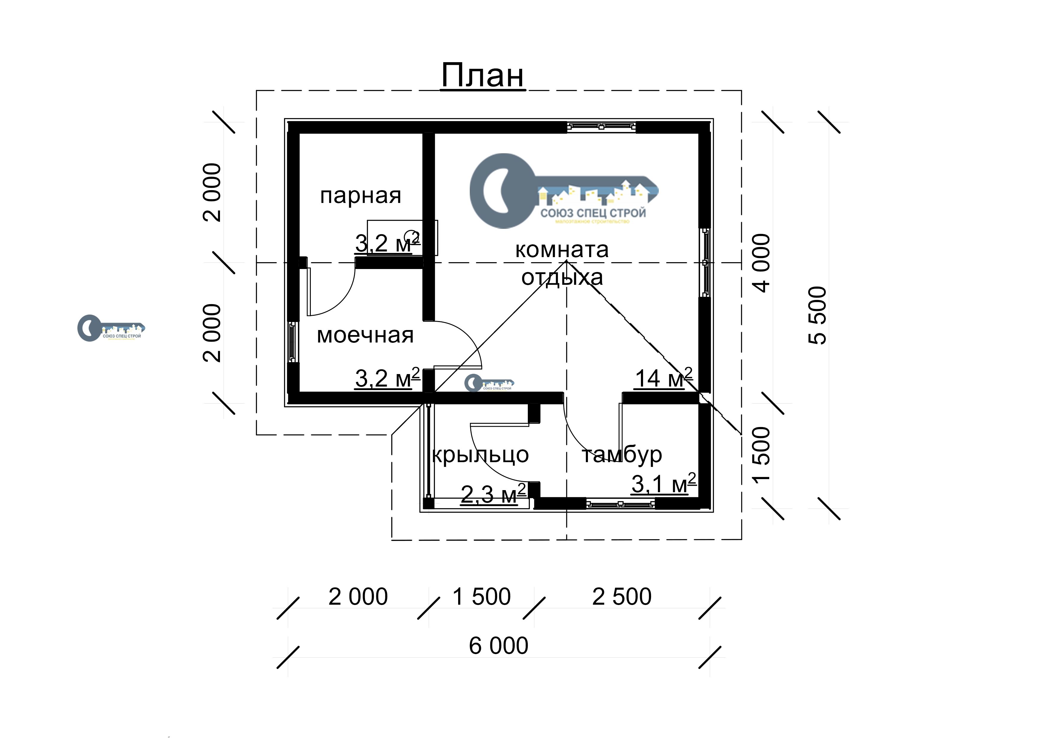 Б-07 ГАБАРИТНЫЕ РАЗМЕРЫ: (5,5Х6М) 1 ЭТАЖ, ОБЩАЯ ПЛОЩАДЬ: 30М²