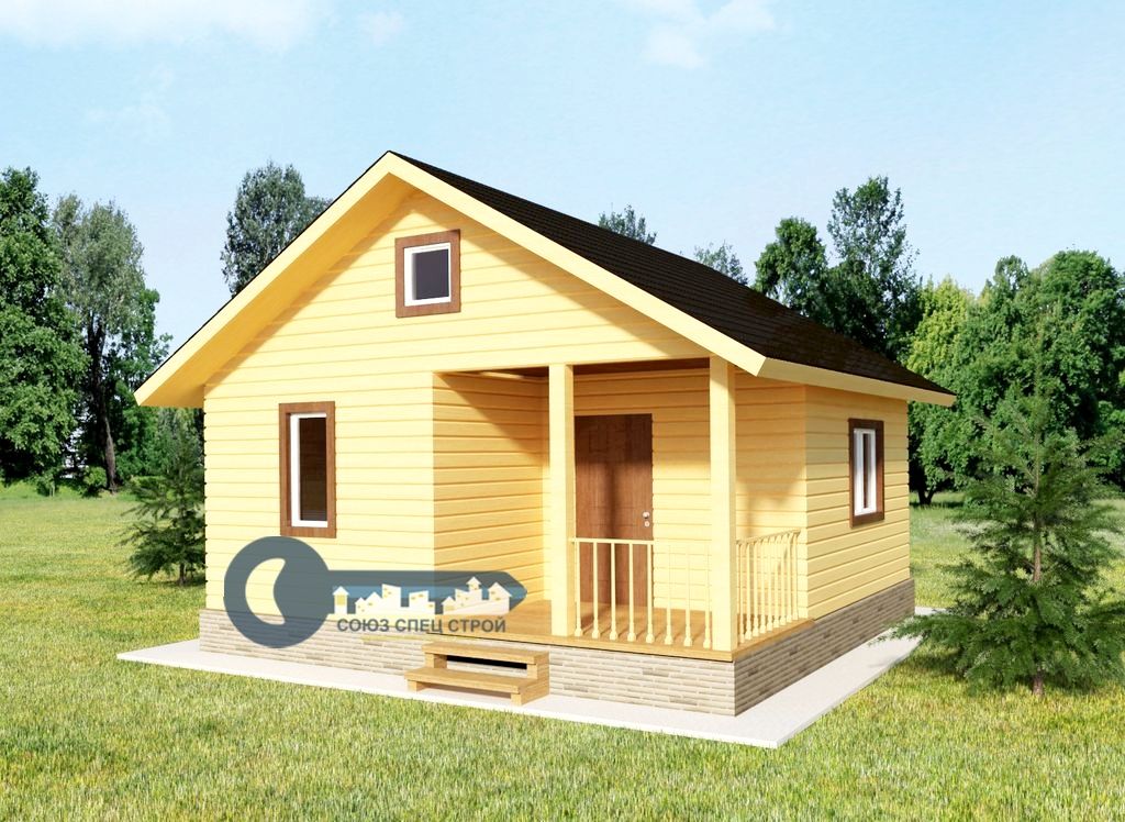 Обвязка: брус 200х200 мм, строганный с внешней стороны, естественной влажности.