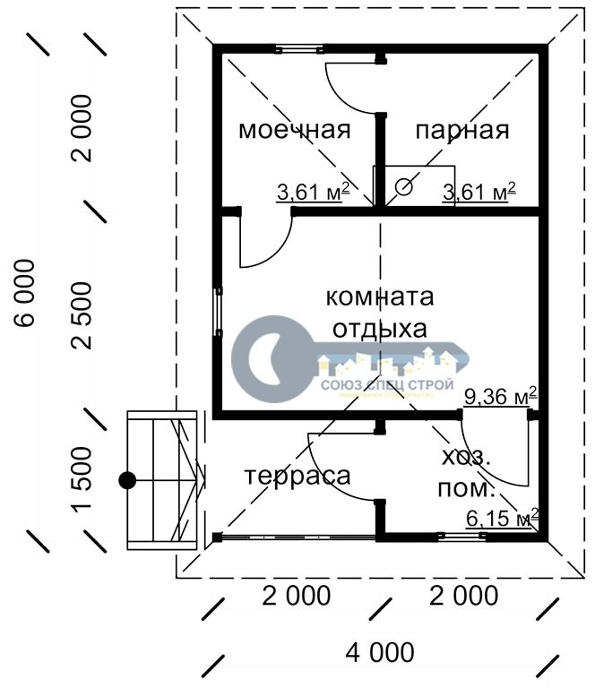 Обвязка: брус 150х150 мм, строганный с внешней стороны, естественной влажности.