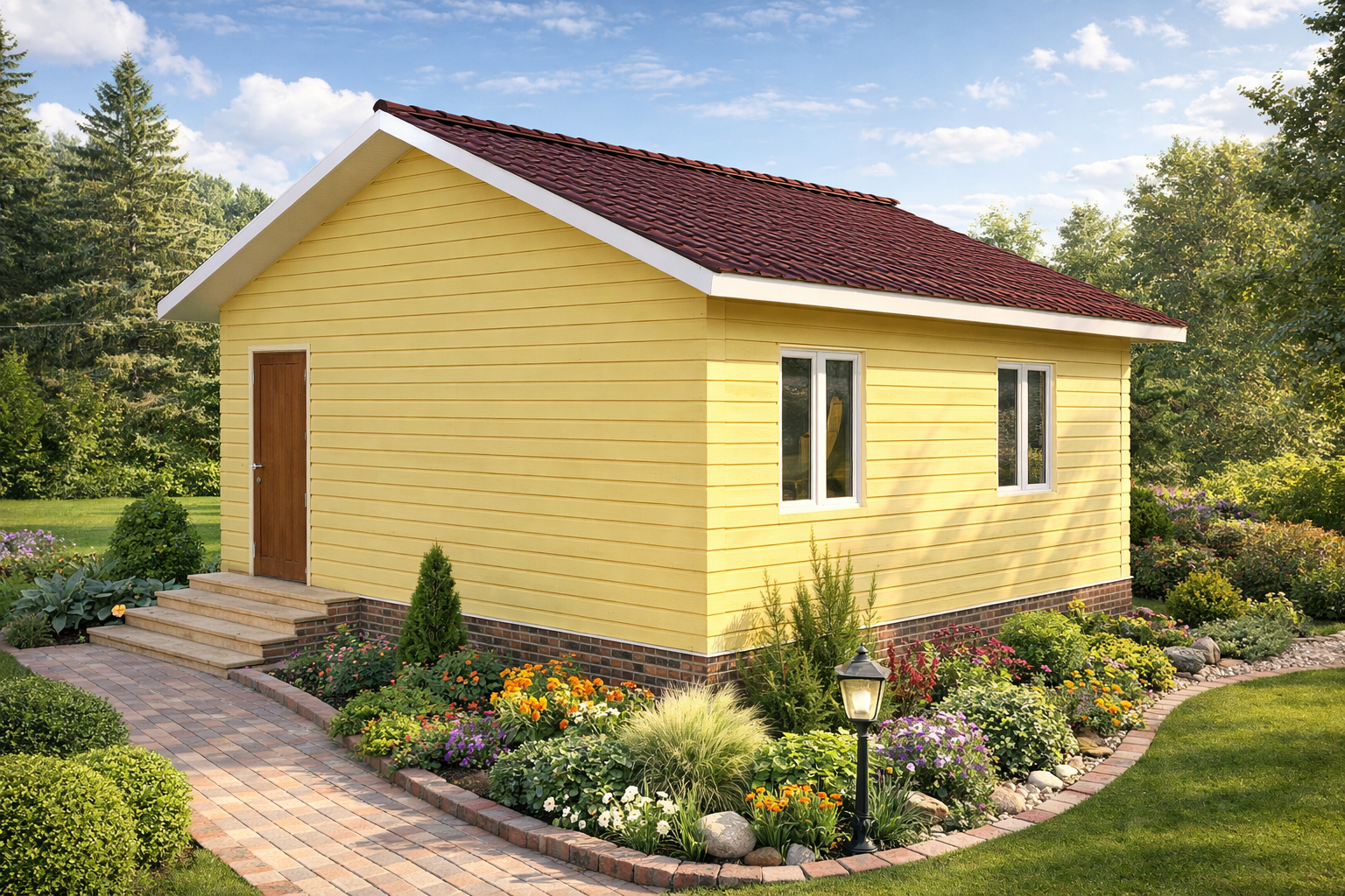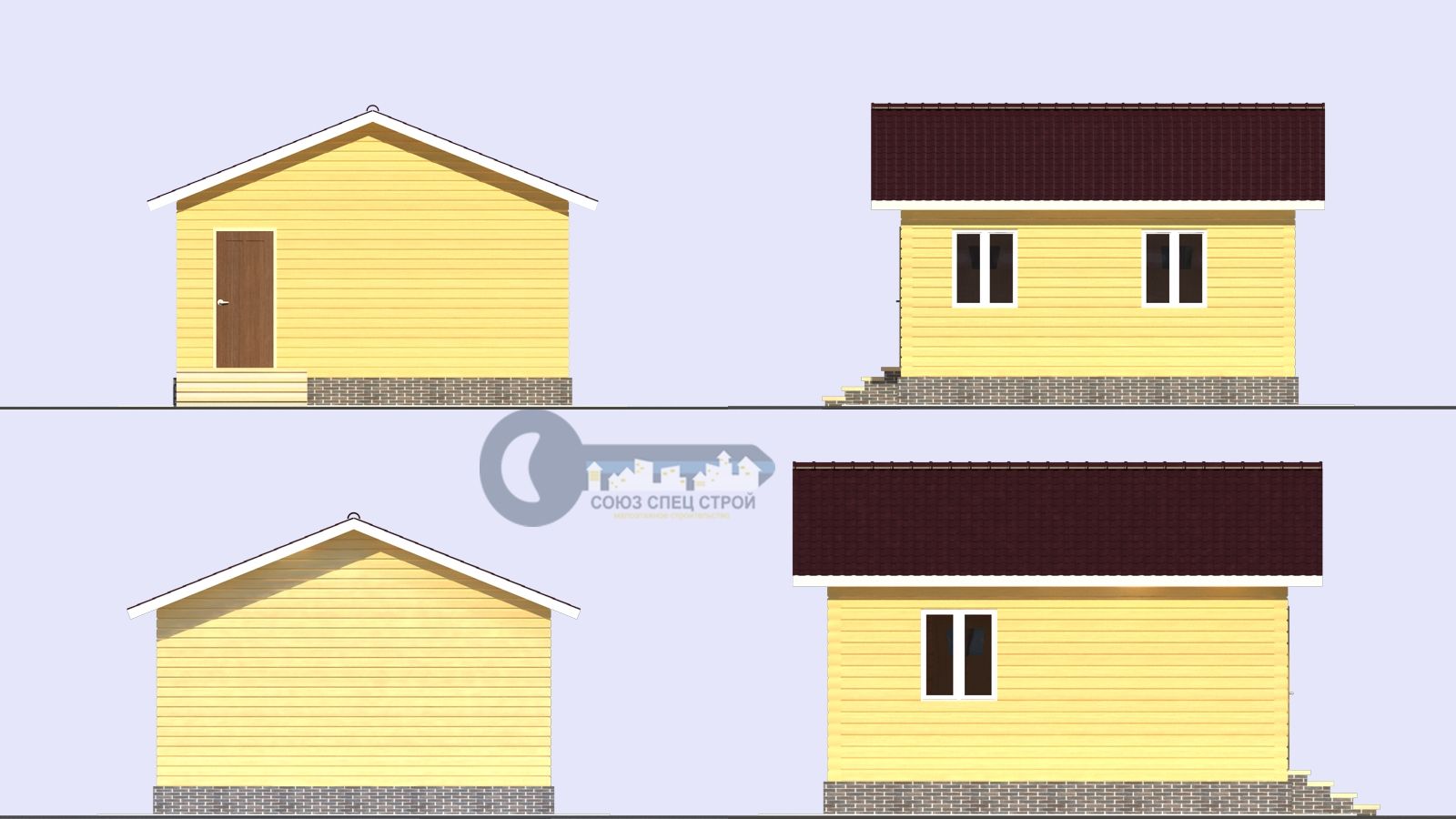 Фронтоны: каркасные, снаружи обшиваются имитацией бруса