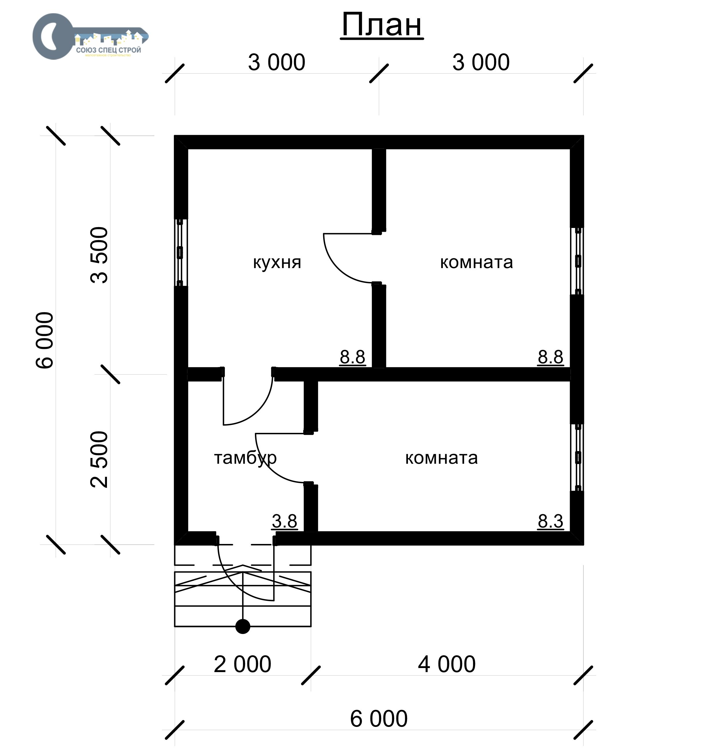 Д-04 ДАЧНЫЙ ДОМ ИЗ БРУСА: ГАБАРИТНЫЕ РАЗМЕРЫ: (6Х6М), ОБЩАЯ ПЛОЩАДЬ: 36М²