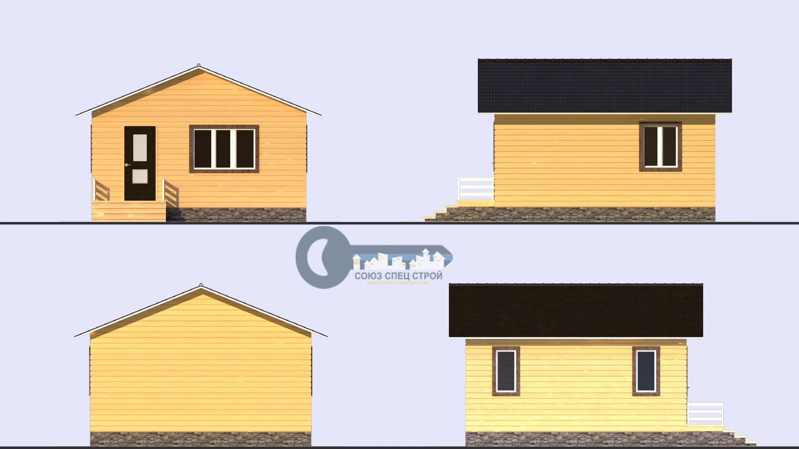 Фронтоны: каркасные, снаружи обшиваются имитацией бруса