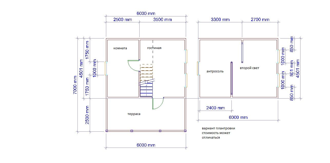 Лестница: одномаршевая из строганной доски, 3 ступеньки при входе из строганной доски, монтаж плинтусов и галтелей входят в стоимость.