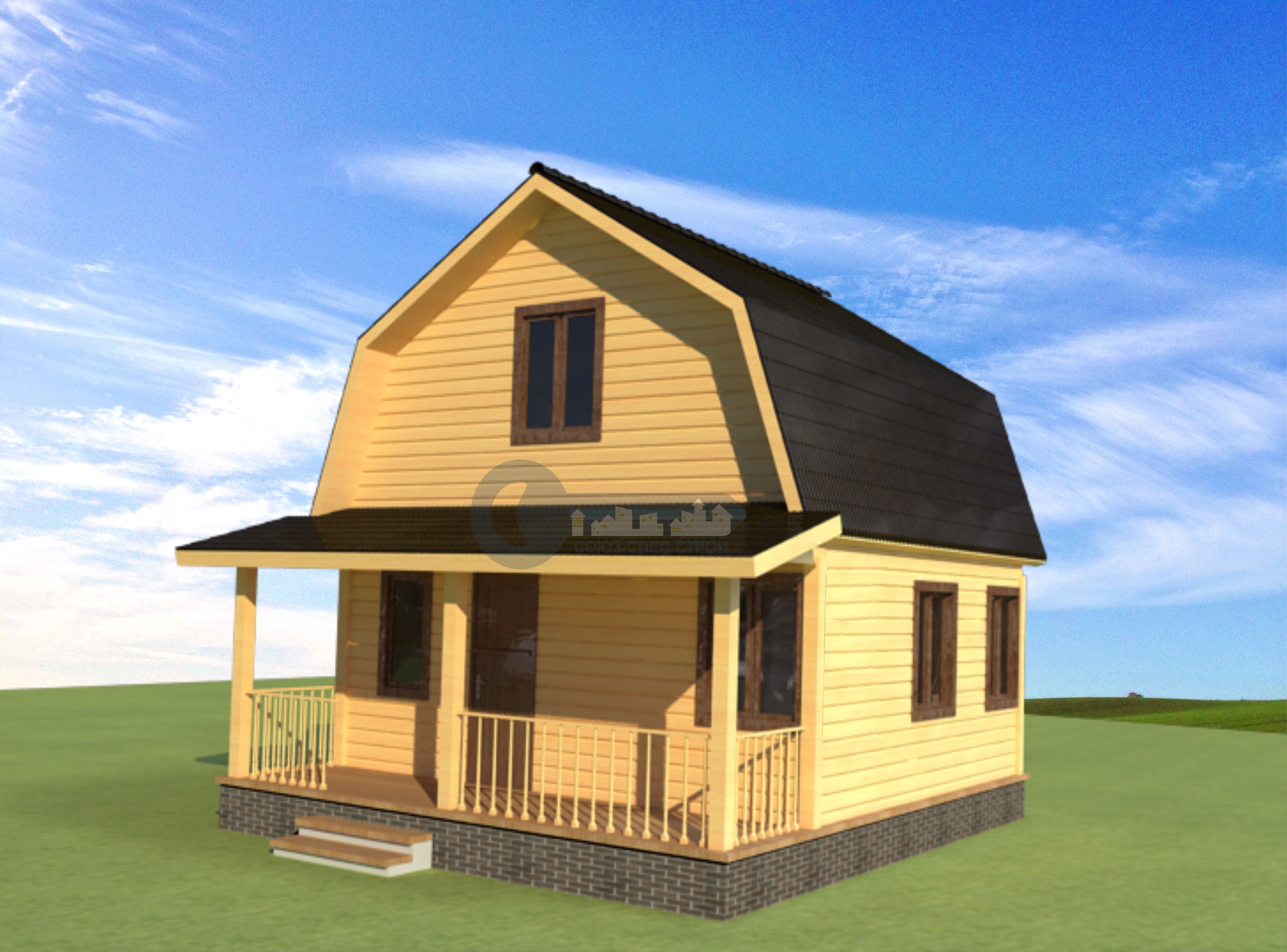 Стены: каркасные стены и потолок обшиваются вагонкой (сосна), утепление (мин.вата 100 мм), паровлагоизоляция марки «Б», фронтоны снаружи обшиваются имитацией бруса либо вагонкой «штиль»