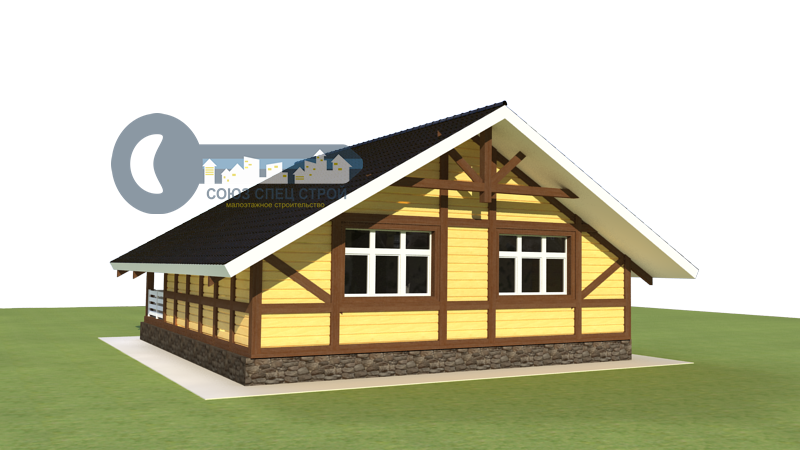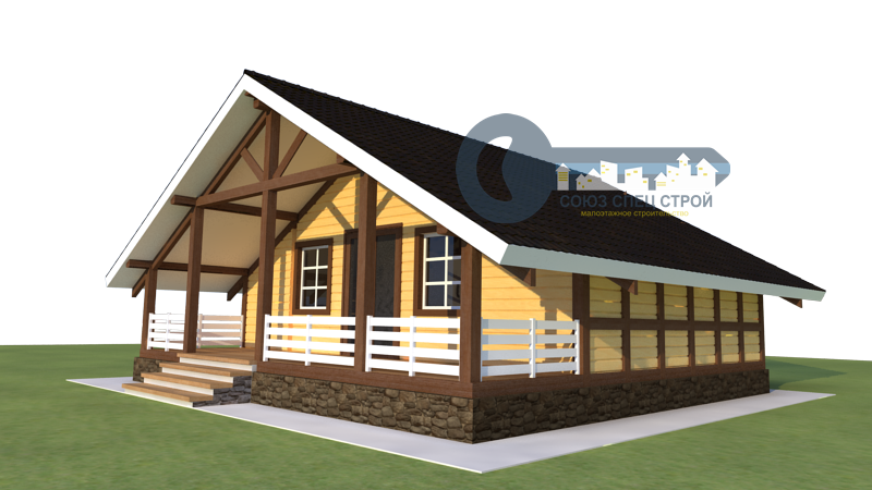 Веранда: открытая под общей крышей, пол – лаги из бруса 100х150мм.