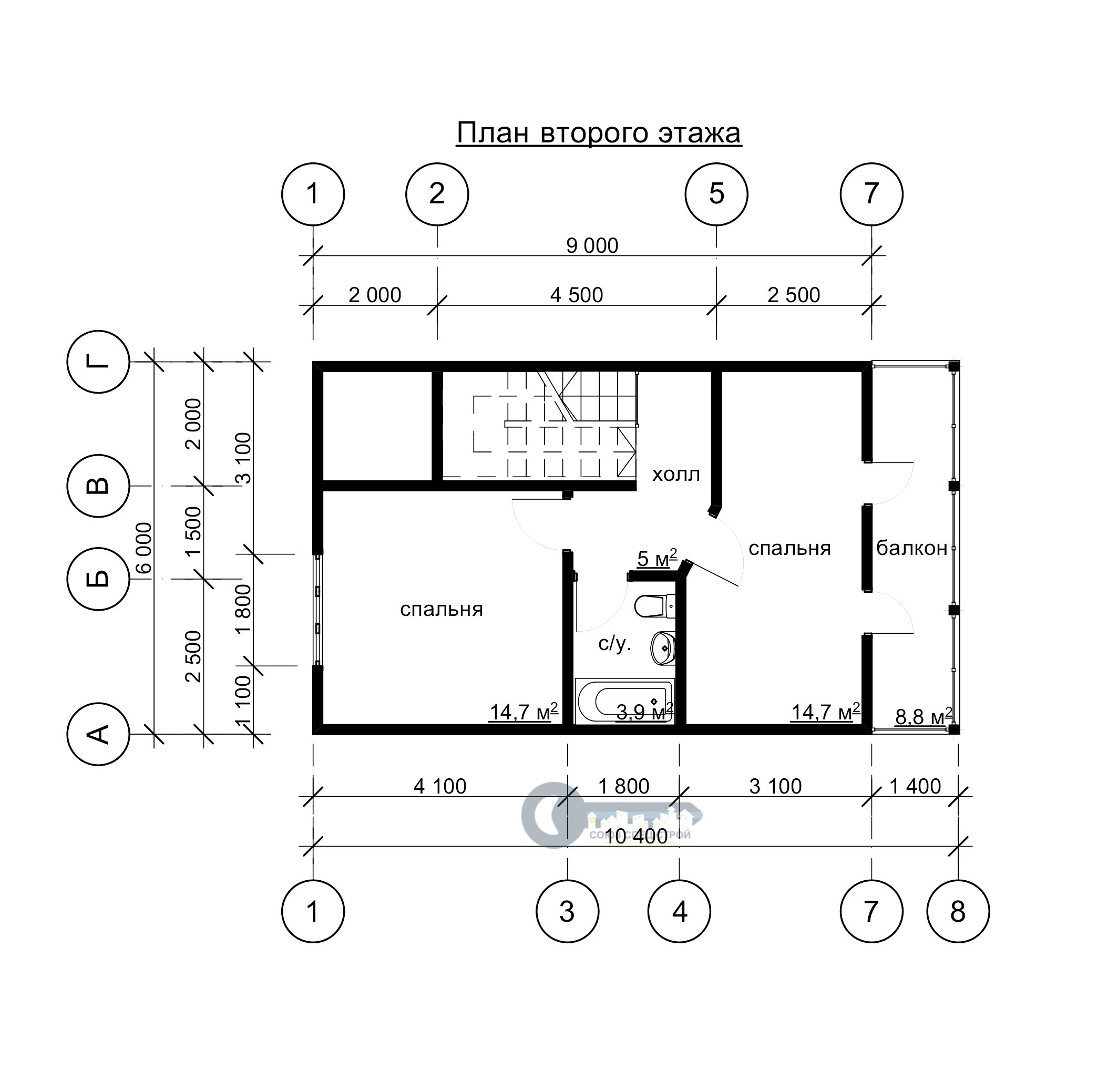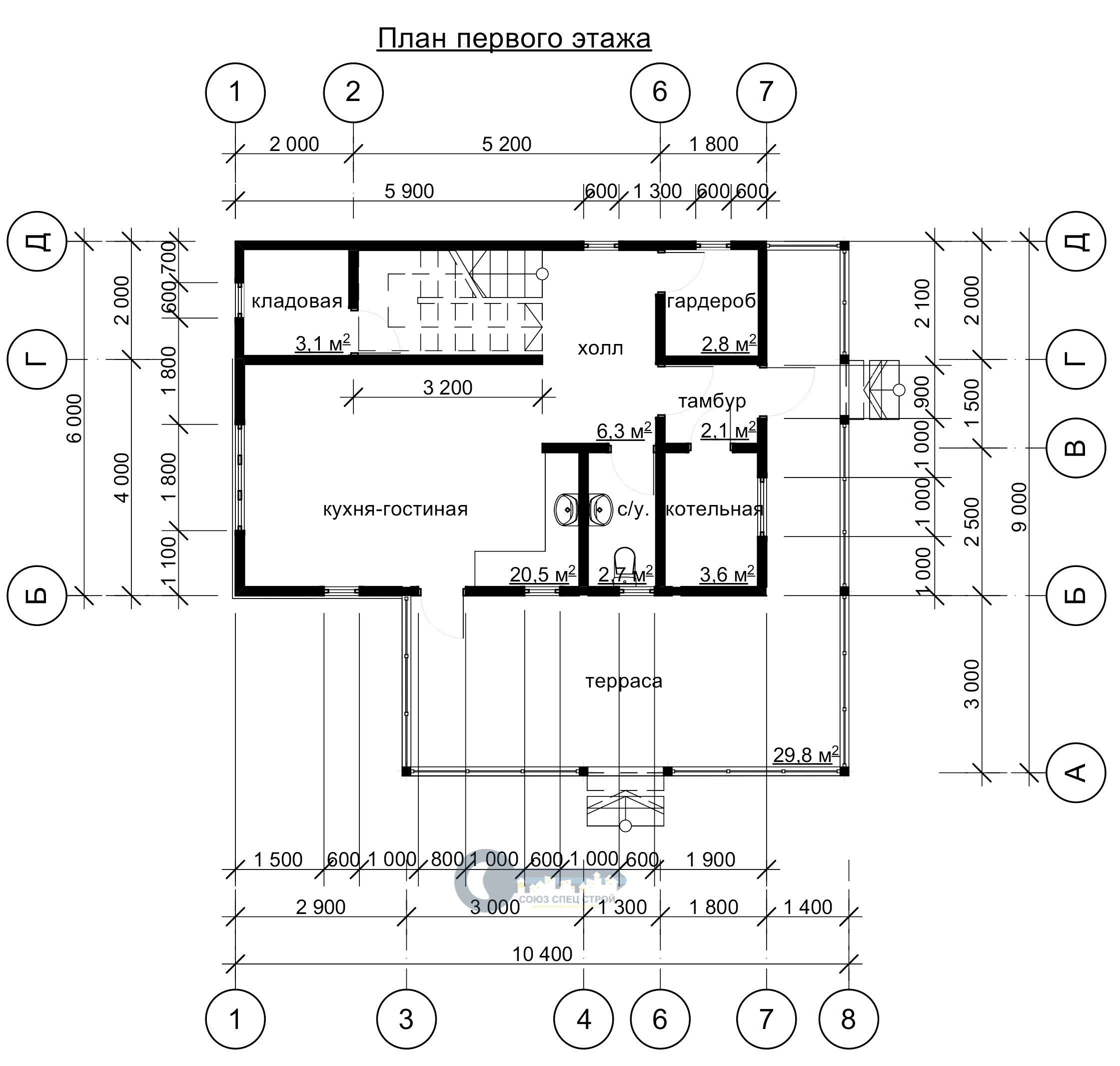 ДЖ-13 ГАБАРИТНЫЕ РАЗМЕРЫ: (9Х10,4М) 1,5 ЭТАЖА, ОБЩАЯ ПЛОЩАДЬ: 147.3М²