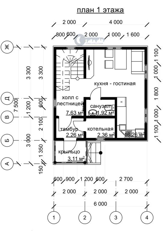 Обвязка: брус 200х200 мм, строганный с внешней стороны, естественной влажности.
