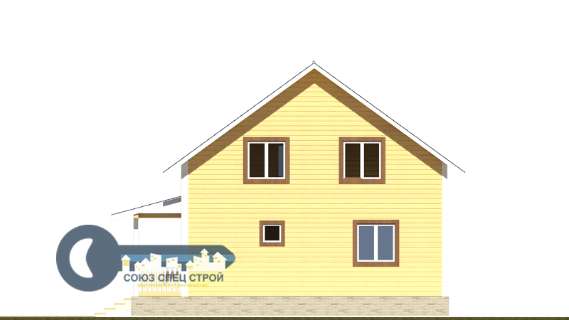 Вынос крыши: по периметру 45 см, подшит доской строганной естественной влажности.