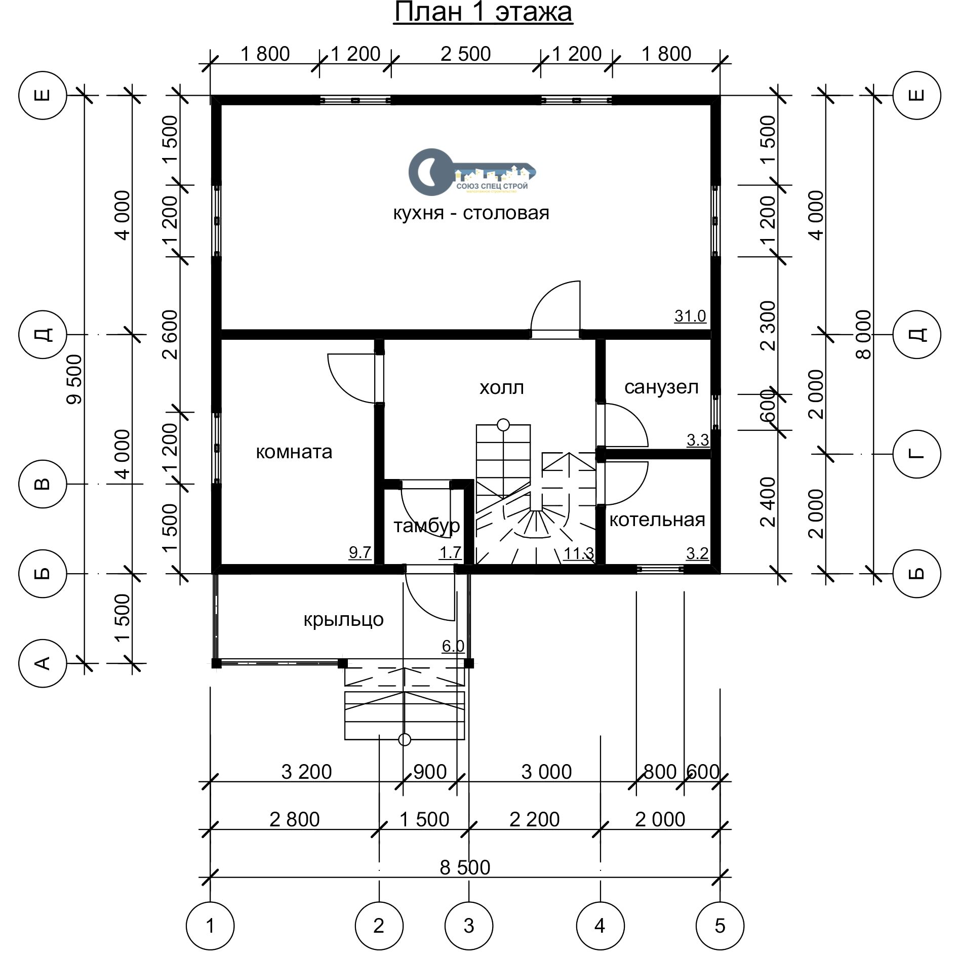 Первый этаж высотой 2,7м.