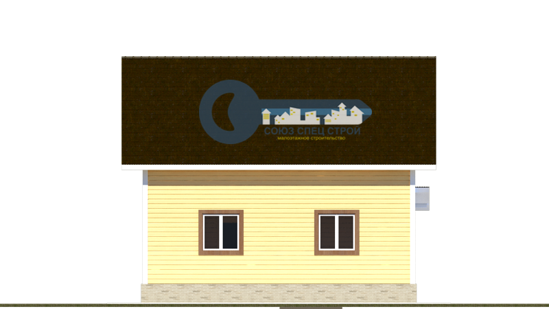 Крыша двускатная, основной конёк по центральной оси здания.
