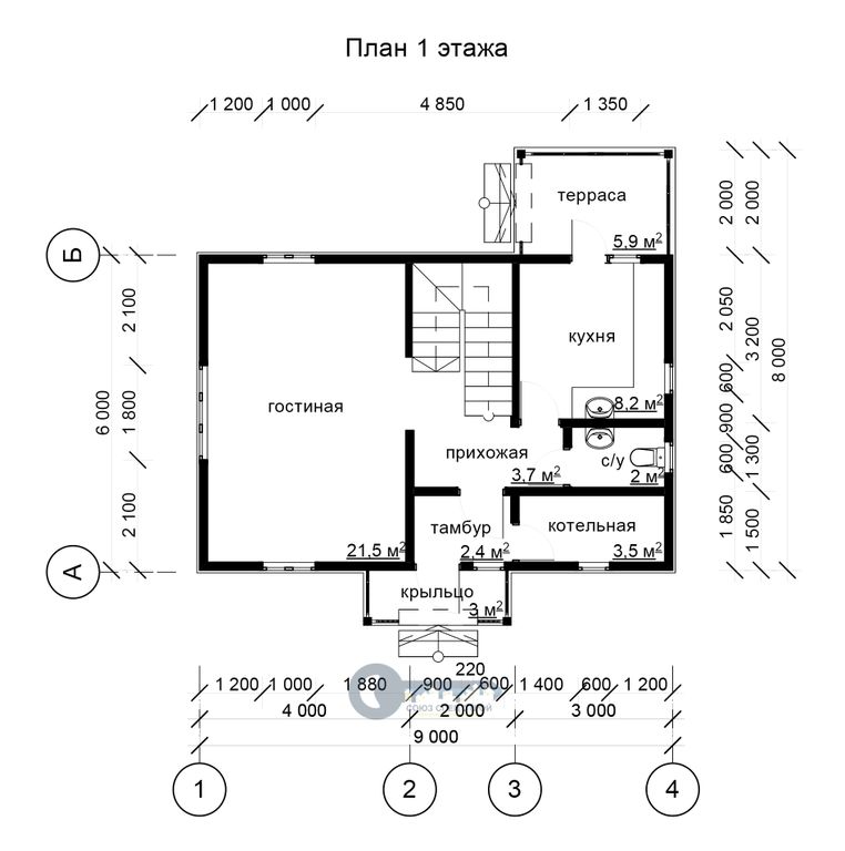 Обвязка: брус 200х250 мм, строганный с внешней стороны, естественной влажности.
