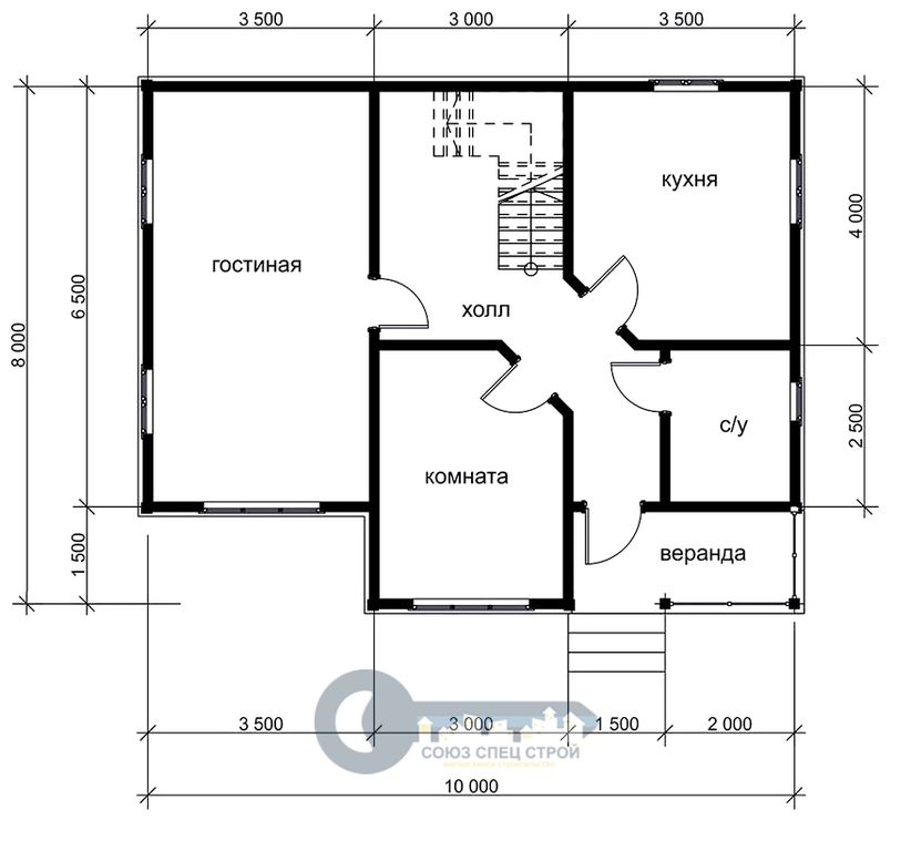 Лестница одномаршевая из строганной доски, 3 ступеньки при входе из строганной доски, монтаж плинтусов и галтелей входят в стоимость