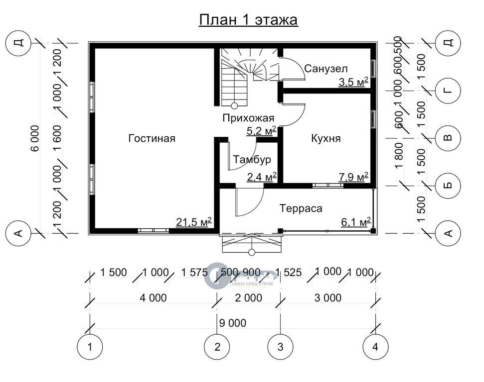Обвязка: брус 200х250 мм, строганный с внешней стороны, естественной влажности.