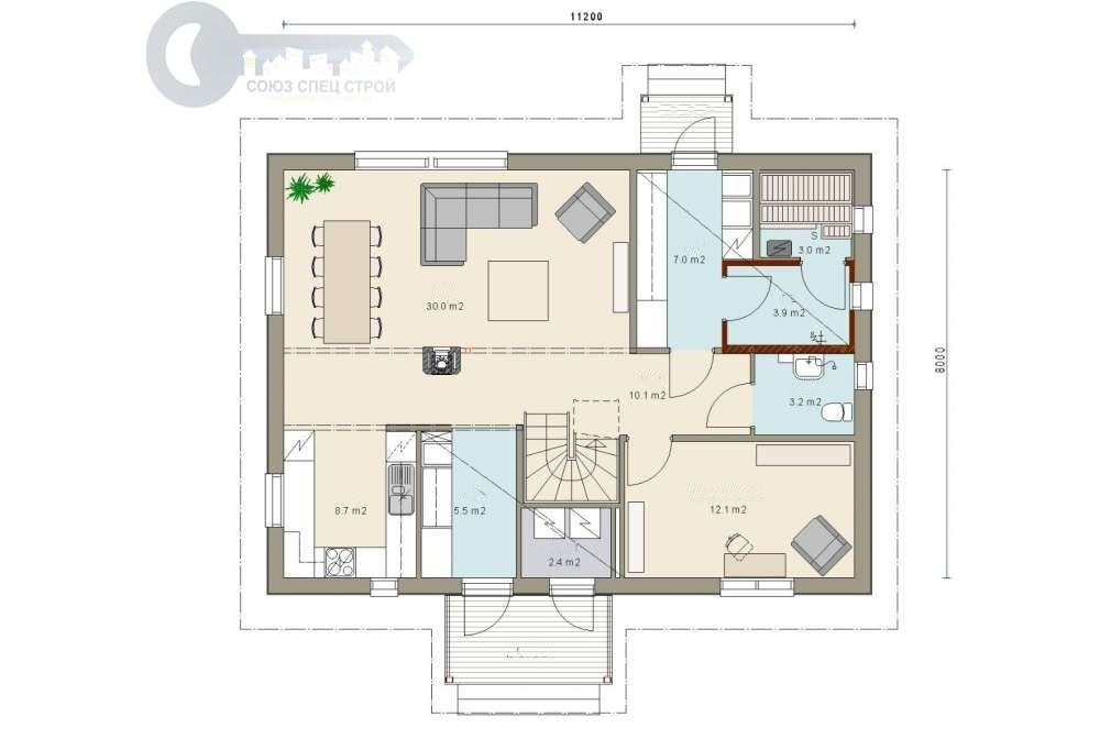 ДЖ-22 ЖИЛОЙ ДОМ: ГАБАРИТНЫЕ РАЗМЕРЫ: (11,2 Х 8М) 2 ЭТАЖА, ОБЩАЯ ПЛОЩАДЬ: 185М²