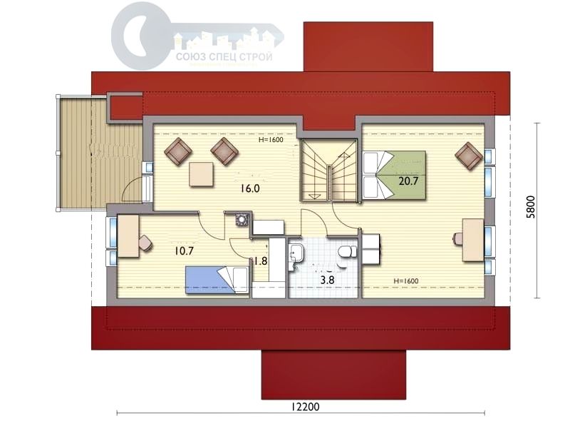 Веранда: высота - 2.25 м, общая крыша с домом, внешний вид согласно визуальной картинке.